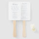 Ventilador de Mão do Programa de Casamento clássico com palavras de sotaque em uma tipografia de caligrafia elegante. Todo o texto está em azul empoeirado sobre um fundo branco e pode ser alterado para qualquer cor desejada clicando no botão "personalizar". Estes Fãs de Mão do Programa de Casamento são perfeitos para um casamento formal.