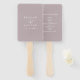 Mantenha seus convidados legal e informados com este elegante fã de mão do programa de casamento roxo e lavanda. Apresentando uma design minimalista com tipografia moderna, este ventilador de mão fornece um toque sofisticado e prático para sua cerimônia de casamento. A cor suave e o layout limpo mostram os detalhes do programa de casamento em um formato na moda e fácil de ler. Perfeito para qualquer tema de casamento, esses fãs de mão garantem que seus convidados fiquem confortáveis enquanto seguem seus eventos especiais.