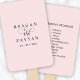Mantenha seus convidados frescos e informados com este elegante leque de mão de programa de casamento rosa. Com um design minimalista e tipografia moderna, este leque de mão oferece um toque sofisticado e prático à sua cerimônia de casamento. A cor suave e o layout limpo exibem os detalhes do seu programa de casamento de forma elegante e fácil de ler. Perfeito para qualquer tema de casamento, esses leques garantem que seus convidados permaneçam confortáveis enquanto acompanham os eventos do seu dia especial.