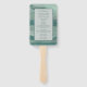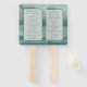 Leque de mão para programa de casamento moderno com seus detalhes sobre um fundo costeiro abstrato.