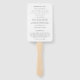 Leque de mão de programa de casamento moderno com um design simples que combina uma fonte elegante e fontes serif clássicas.