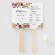 Compartilhe os detalhes do casamento para sua família e amigos com os fãs do programa de casamento personalizáveis. Apresenta ilustrações de aquarela de flores laranja e burgundy com folhagem. Esses fãs do programa floral são perfeitos para casamentos no outono ou outono. Personalize adicionando nomes, data e outros detalhes do evento.