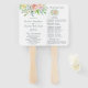 Leques de mão elegantes para programa de casamento floral com uma borda superior de verde e flores em aquarela em rosa, pêssego, lavanda, branco e azul. Estes leques de mão para casamento fornecerão aos seus convidados a ordem do serviço e são perfeitos para um casamento de primavera.