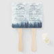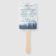 Esses programas de casamento de fãs de mão são simples, elegantes, rústicos e bonitos. A design apresenta uma cena de montanha ao ar livre com pinheiros azuis envoltos em neblina ou neblina. A tipografia apresenta uma caligrafia antiga em script, e há espaço para detalhes sobre a cerimônia, a festa noiva e um obrigado curto para você.