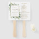 Este fã de mão do programa de casamento apresenta cor d'água, eucalipto verde, folhas verdes com uma estrutura retangular dourada. Para personalização mais avançada deste design, clique no link "Personalizar mais". Itens correspondentes também estão disponíveis.
