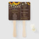 Modelo de fã de cerimônia de núpcias elegante e russa com buquês de girassóis e cordas de luzes cintilantes em um fundo de madeira castanho escuro.++++++ Personalize-o com seus detalhes! +++++++++ Adequado para o país rústico | Jardim de Verão ou casamentos no outono.