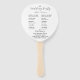 O programa do dia do casamento impresso em um fã de mão em estilo de pá que mostra a foto de um pássaro laranja de flor de Planta de Paraíso no lado frontal com os nomes de noiva e noivo em branco e estilizado. O verso do programa lista os participantes da festa de casamento e os ritos da cerimônia em um fundo branco com a inscrição das cinzas escuras. Edite o fã de mão e substitua as informações do programa de casamento por suas próprias. Perfeito para uma cerimônia de núpcias de temas tropicais dentro ou ao ar livre! Projetado para coordenar com a nossa coleção de Casamento Floral Tropical Bird of Paradise.