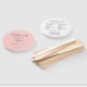 O programa do dia do casamento impresso em um fã de mão estilo redondo que apresenta um fundo cor-de-rosa pincelado com tendência no lado frontal com os nomes noiva e noivo em cinzas escuras, script estilizado. O verso do programa lista os participantes da festa de casamento e os ritos da cerimônia em um fundo branco com a inscrição das cinzas escuras. Edite o fã de mão e substitua as informações do programa de casamento por suas próprias. Perfeito para uma cerimônia de casamento no interior ou no exterior! Selecione o número de programas de ventilador manual desejados.