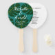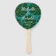 Elegante tropical de cerimônia de casamento da praia em folha de palma tropical, ordem de fã de mão. Adicione seu cronograma itinerário da cerimônia de casamento personalizado. Modelo de tipografia de script clássico para casal se casando e convidados. Cor azul-turquesa ou personalizada. Personalize com nome e ordem. Padrão de folha de palma de Monstera. Excelente para o casamento de verão ou destino em clima exótico.