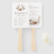 Apresentando nosso simpático fã de mão do programa de cronograma do dia de casamento do boho ocidental do país. Feito com amor e atenção aos detalhes, este fã mostra a combinação perfeita do charme ocidental e da elegância floral. Desde o nosso design de ferradura pintado de hábito até às botas ocidentais e aos florais intrincados, todos os elementos são meticulosamente feitos para capturar a essência do seu dia especial. Que este incrível acessório seja seu guia, mantendo seus convidados legal e informados durante toda a sua celebração mágica. Diga "eu faço" à nossa coleção de design de casamento estilo ocidental, e deixe seu dia especial ser adorado com o alento da elegância boho e a beleza eterno do romance ocidental. Trabalho de arte de aquarela pintada à mão por Moodthology Papery.