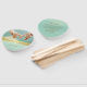Leques de mão simples e elegantes para festa de casamento na cor verde menta com detalhes em folha dourada e foto personalizada.