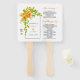 Flores de cor d'água laranja, arco e iniciais, fã de mão do programa de casamento outono. Esta adorável design de casamento apresenta um arco com flores de cacto laranja e folhas verdes no canto esquerdo e suas iniciais. Os nomes estão na tipografia de scripts.