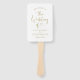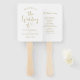 "O Casamento De" flui em caligrafia de script de coração de ouro quente na frente deste programa de leque de mão moderno, terminado com um acento de floreio de coração romântico. A parte de trás apresenta a ordem completa do serviço da cerimônia para fácil referência dos convidados. Montado com um cabo de madeira resistente, este leque de dupla finalidade mantém os convidados frescos e informados ao longo da celebração.