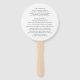 Ventilador de mão do programa de casamento elegante com um design simples e clássico com seu monograma e seus detalhes de evento em uma fonte serif tradicional.