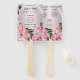 Os fãs do programa de casamento são uma escolha popular para as cerimônias de verão. É uma forma na moda para manter o convidado de casamento legal e fornecer os detalhes importantes como você diz "Eu faço". A fazer o teu evento lá fora? Não é surpresa que as pessoas precisem de algo para as manter legal. É por isso que um fã personalizado do programa de casamento é o presente perfeito para dar no seu casamento. Personalize e crie adicionando e alterando o texto nos campos fornecidos. Você pode alterar o estilo, o tamanho e a cor da fonte, bem como o tipo de papel.