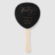Esses elegantes fãs de mão do programa de casamento apresentam um falso rosa de design de tipografia em um fundo preto. Personalize com os nomes da noiva e noiva e a data do casamento na frente e os detalhes da sua cerimônia nas costas. Desenhada por Susan Coffey.