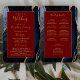 Este elegante e moderno fã do programa de casamento mostra um marinho azul de fundo agado, aparado com brilho dourado. O texto aparece em letras elegantes douradas e fontes em placas em um retângulo vermelho arrojado.