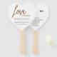 A simples caligrafia moderna escrita à mão guiada por escrito em cobre brilho Amor está no programa de casamento aéreo fã de modelo com dois corações no lado de trás. +++++++++ Fácil de personalizar com seus detalhes! +++++++++ Adequado para cerimônias e recepções de cerimônias de verão ao ar livre - jardim, quintal, litoral, praia, resornos de férias.