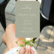 Este moderno fã do programa de núpcias apresenta um roteiro branco e sans serif texto em um fundo verde sábio.
