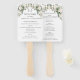Mantenha seus convidados legal e informados com nosso elegante fã de mão do programa de casamento! Este lindo acessório apresenta uma design impressionante de rosas brancas delicadas na frente e atrás, complementando perfeitamente seu dia especial. A parte frontal do ventilador contém a ordem da cerimônia, garantindo que seus hóspedes possam acompanhar sem problemas. No topo da placa está um monograma personalizado único das iniciais da noiva e do noivo, exibido elegantemente dentro a círculo de folhas. E para torná-lo realmente único, o verso também apresenta uma lista encantadora de sua festa de casamento, introduzindo as pessoas especiais que ficarão ao seu lado. Este favor de casamento funcional e em voga é certamente um bem-estar apreciado para os seus entes queridos durante anos.