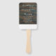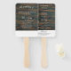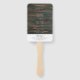 Ventilador de Mão do Programa Rustic Dark Wood Wedding. O design tem uma textura de fundo de madeira escura e um moderno roteiro branco. Personalize todo o texto do ventilador. Clique no link da coleção abaixo do ventilador para encontrar mais itens correspondentes.