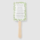 Fã de mão do programa de casamento russo com seus detalhes rodeados de folhas de azeitona. Seus detalhes estão em uma fonte de cinza média. A frente tem seus eventos de cerimônia e as costas têm sua festa de casamento. Os fãs de mão são perfeitos para um casamento ao ar livre de verão.