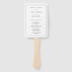 Ventilador de mão do programa de casamento elegante com um design simples e clássico com fontes serif tradicionais e uma fronteira em torno de seus detalhes de evento.