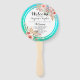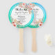 Modelos de Programas de Ventiladores de Casamento - Letras Legantes e Flores Rosa Vintage com Cores d'Água em Bolinhas de Téal Azul Turquesa Verde Azul e Azul Ouro Falso Confetti. Um Design perfeito para o seu grande dia. Todo estilo de texto, cores, tamanhos podem ser modificados para ajustado das suas necessidades!