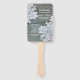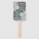 Madeira de celeiro azul e fã de mão do programa de casamento de rendas.