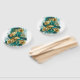 Ramificação com joias, ouro e folhas verdes de Ginko biloba à luz, pintada de fundo verde. Ginko biloba