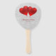 Personalize um favor de casamento único para os convidados com um conjunto de fãs do Red Heart Balloons. Design de ventilador de mão apresenta um par de balões cardíacos sobre um delicado fundo de damasco de rendas. Personalize com os nomes do noivo e da noiva junto com a data do casamento. Material adicional disponível com esta design também.