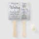 Dê aos seus hóspedes uma maneira fácil e divertida de acompanhar a cerimônia de casamento com esses fãs do programa. Projetados como parte de nossa Suíte de Casamento de Reflexões Brancas, eles apresentam texto preto sobre um fundo refletindo flores brancas e corações. Totalmente personalizável com locais para inserir detalhes da cerimônia, bem como os nomes da festa de casamento.