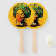 Minha Design apresenta um retrato estilizado de uma linda mulher africana vestindo um manto colorido. A capa é enfeitada com padrões de folhas verdes e amarelas. Seu rosto está cheio de uma silhueta por sol, cheia de pássaros voando pelo céu e uma paisagem com árvores. Ela veste brincos grandes e ornamentados e um colar com a bainha. Estilo de Arte Pop original Ilustração vetorial Copyright BluedarkArt The ChameleonArt.