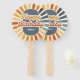 Este alegre e vivo fã de mão é o cúmplice perfeito para a sua celebração de aniversário. Apresentando um design de sol retrô e um padrão de onda ranhosa, este ventilador de mão trará uma vibração nostálgica para a sua festa e a tornará inesquecível.