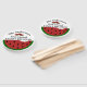 Fatias de melancia, brancas, tropicais, maduras, vermelhas, com uma mordida tirada sobre fundo branco. Fatia grande na parte inferior e duas fatias pequenas entre o texto. Modelo de nome da família no topo, um modelo de número para o número anual e o texto "Reunião da Família" acima de uma fatia grande de melancia. Design está na frente e atrás. Modelos criaram por você!