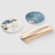 Um floral brilhante e ousado de rosas em tons de azul empoeirado e pêssego é o ponto focal de muitas das peças desse suite de casamento que também contém textos elegantes e layouts modernos de design. O fã de mão do casamento mostrado aqui tem uma borda lateral de rosas e um belo abstrato de aquarela no verso em tons azuis empoeirados. Insira facilmente sua mensagem pessoal e os detalhes da cerimônia de casamento usando o modelo fornecido. Procure ID584 para ver todas as peças correspondentes neste belo conjunto de casamento.