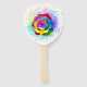 Rosa grande e florescente com pétalas arco-íris sobre fundo branco, pintadas com pedaços de tinta colorida e brilhante. 3d