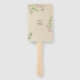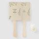 Esta elegante, mas tendenciosa, fã de mão apresenta uma ilustração delicada do verde nas bordas com um fundo de textura rústica. A design de eterno é perfeita para um casamento em qualquer época do ano. A frente inclui os nomes da noiva e do noivo, o verso inclui a data e o lugar do casamento. Essas informações são editáveis e podem ser substituídas por qualquer mensagem de sua preferência.