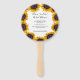 Rustic modern traditional style wedding save the date hand fan featuring a beautiful sunflower border and modern script calligraphy over a clear white background. ++++++++ Ideal for your summer or autumn fall elegant outdoor floral garden, farmhouse barn, or backyard themed weddings. Personalize it with the bride's and groom's names and wedding details on both sides!