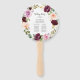 Elegante fã de mão do programa de casamento floral que apresenta seus detalhes de casamento cercados por uma coroa de rosas de aquarela e verde em tons de rosa-pincel, pêssego, burgundy, roxo e verde. Personalize os fãs do programa de casamento floral adicionando sua data e local do casamento, ordem dos eventos e festa de casamento no verso. Projetado para coordenar com a nossa coleção de casamento Rustic Moody Floral.