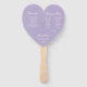 Um fã do programa de casamento em forma de coração simples, mas elegante para uma cor de casamento lavanda. Os títulos e os nomes (e as iniciais) da noiva e do noivo são escritos em uma escrita elegante, o restante em bonés. O fundo é lavanda (roxo claro), o texto é branco. No verso, tem no lado esquerdo o programa da cerimônia de casamento e, no lado direito, a festa de casamento (com 2 colunas diferentes para a equipe da noiva e do noivo). e sob eles uma pequena mensagem de agradecimento.