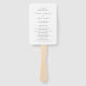 Ventilador de mão do programa de casamento elegante com um design simples com seus detalhes em fontes de serifa e script.