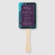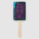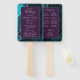 This elegant, modern wedding program fan features a teal agate background trimmed with silver faux glitter. The text appears in elegant silver gray handwriting and copperplate fonts on a purple rectangle.