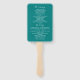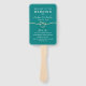 Moderno, minimalista, elegante, caligrafia simples, fãs de mão do programa de casamento teal com coração de corda de ouro.