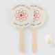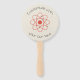 Ventiladores de mão personalizados com texto curvo e estrutura atômica, ideais para qualquer evento temático científico.