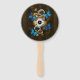 Composição do relógio de aço redondo com discagem numérica romana preta, decorado com engrenagens de ouro e latão, borboletas morfo azuis e lentes danificadas sobre fundo listrado castanho. Estilo Steampunk.