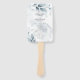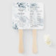 PROGRAMA DE NOIVADEIRA EM LEQUE | Folhagem azul empoeirada elegante decora cada lado destes leques de programas de casamento modernos. Cada convidado pode se abanar e ler todo o programa do seu casamento e dos membros da festa.