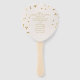 Um delicado fã de mão cor-de-rosa pincel de noiva pincel, com borrão de ouro confetti e espaço para suas iniciais e talvez sua ordem de serviço em sentido inverso.