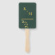 Este ventilador manual apresenta um fundo verde vibrante com texto de ouro, permitindo personalização com nomes ou mensagens. A design inclui dois caracteres que representam as iniciais do noivo e noiva, que também podem ser personalizados. Ele serve como na moda e acessório prático para casamentos, chás de panela ou festas, mantendo os convidados legal e acrescentando um toque personalizado ao evento.
