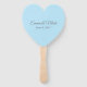 Este ventilador de remo é mostrado em uma adorável forma cardíaca com corações de cristal de tom prateado com texto de script de rico com nomes de exemplo e data, personalize e mude os nomes e datas para o seu. Cinza de Cor de Texto Azul Cor